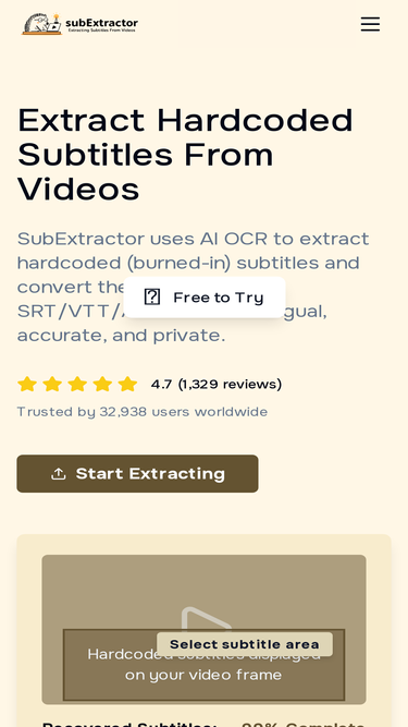 87%ai-powered tool to extract hardcoded and burned-in subtitles from any video. efficient, accurate, and supports all languages.