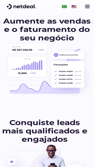 79%Reunimos na Netdeal todas as funcionalidades de marketing e vendas para suas estratégias digitais: email marketing, automação de marketing,CMS para construção de sites e landing pages, pop-ups e push notification, dashboards, heatmap, testes A/B e muito mais.