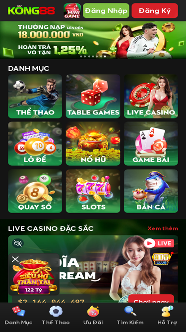 93%Tham gia KONG88 Casino để trải nghiệm các trò chơi casino online như Baccarat, Roulette, và Blackjack với dealer chuyên nghiệp.