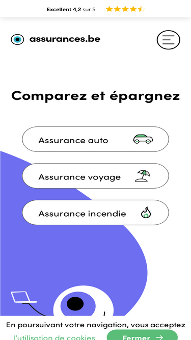 50%Comparer les assurances ? Comparez votre assurance auprès de tous les assureurs sur Assurances.be et trouvez la meilleure assurance au prix le plus bas.
