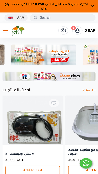 77%تسوق من متجر كيوت بيتس أفضل مستلزمات الحيوانات الأليفة في السعودية مستلزمات قطط وكلاب وطيور واكل رطب وجاف ومكافأت ومكملات وألعاب واكسسوارات وأقفاص وعناية كاملة للحيوانات المنزلية بتوصيل سريع لمدن المملكة بأسعار منافسة.