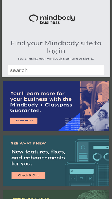 61%use the mindbody launch page to find your site and access your business information. you may search by business name or site id.