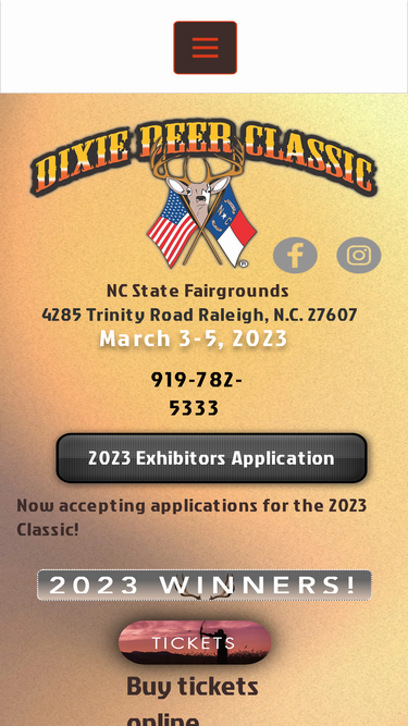 73%Dixie Deer Classic Feb 27 – Mar 1, 2026 NC State Fairgrounds4285 Trinity RoadRaleigh, NC 27606 919.821.7400 Directions: The N.C. State Fairgrounds is easily accessible from the I-440 Beltline, Interstate 40, as well as from Blue Ridge Road, N.C. Highway 54 (Hillsborough Street) and now Edwards Mill Road (see directions below). Free parking is available on...