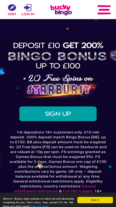 99%sign up to bucky bingo today and take advantage of our great welcome offer. deposit £10 to play with £30. with plenty of great online slots, come and join the stable today. t&cs apply.
