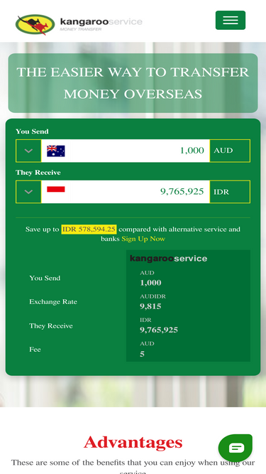 74%Send money quickly and securely with Kangaroo Service. Enjoy competitive fees, excellent exchange rates, and a reliable platform trusted by thousands.