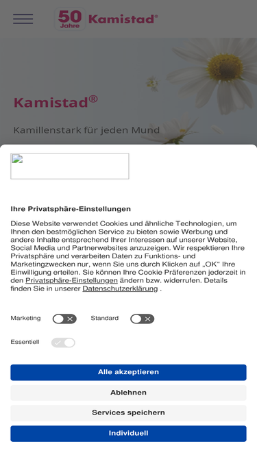 87%Gesunder Mundraum: Setzen Sie auf Kamistad® Produkte mit Kamille zur Pflege und bei Schmerzen – für Ihre Mundgesundheit Kamistad® kaufen!
