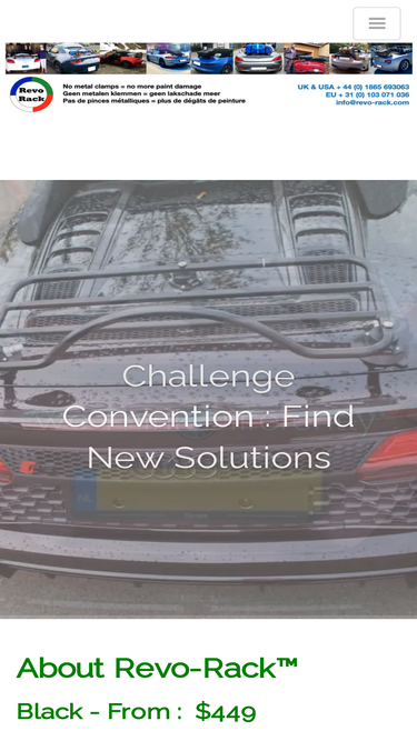 Lightweight aluminium frame in black or polished finishes. Attached using vacuum pad technology no metal clamps to damage paintwork. Certified to carry 20kg/45lbs fitted in 90 seconds without tools.