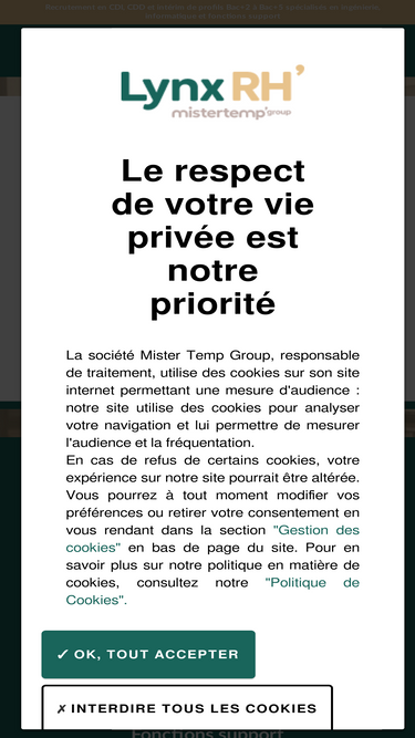 97%Lynx RH : Recrutement spécialisé en CDI, CDD et intérim de profils Bac+2 à Bac+5 en fonctions supports, informatique et ingénierie. Offres d'emploi.