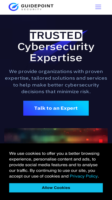 91%GuidePoint Security Government Solutions is a wholly-owned subsidiary of GuidePoint Security LLC. Our highly-certified team of practitioners has decades of expertise helping federal government organizations plan, build and run effective cybersecurity programs.