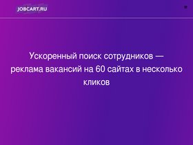 87%Подготовка и размещение вакансии в 4 каналах в Telegram Услуга доступна для уже размещенных вакансий на JOBCART.RU 1 вакансия / 4 поста / 4 сообщество Список каналовid7274 Удалённая работа id7275 Удалённая работа id7276 Удалённая работа Синий id7277 WorkFactory удалённая работа - подготовим пост, - согласуем с администратором канала, - разместим вакансию с вашим телефоном и ссылкой на лендинг страницу на jobcart.ru для сбора резюме.