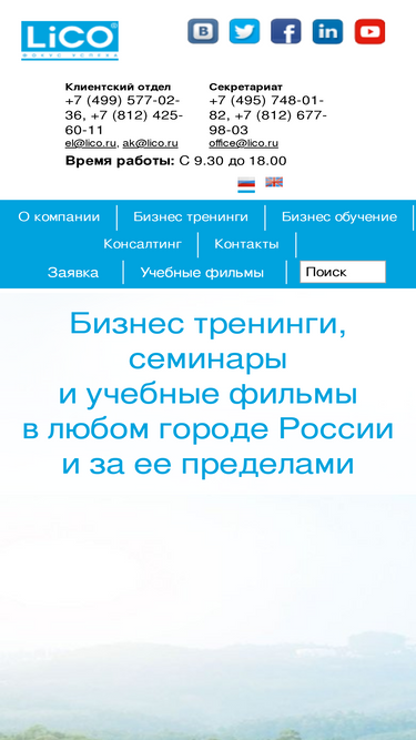 100%тренинговый центр lico осуществляет организацию и проведение корпоративных бизнес-тренингов, семинаров, консалтинга, учебных фильмов в москве и санкт-петербурге. разработка тренинговых программ под потребности заказчика компании.