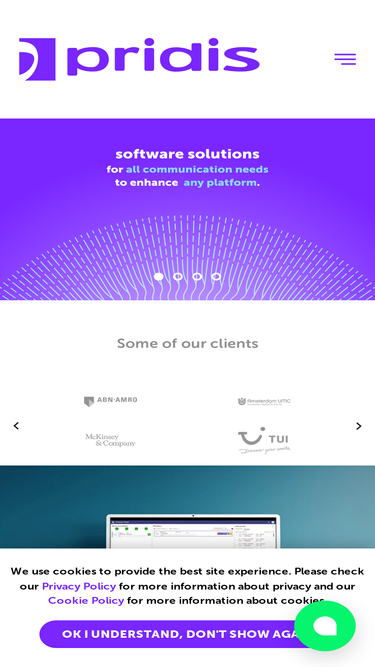 72%Pridis is a leading, European software development company that creates tooling that manages all communication devices and services for organizations. Our solutions improve communications, we put the customer first in everything we do.