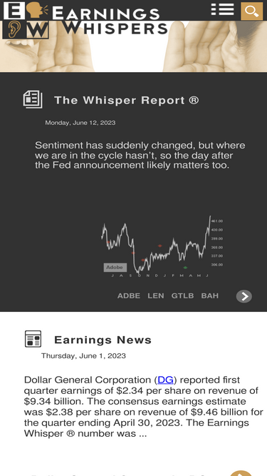 77%Founded in 1998, Earnings Whispers provides highly accurate earnings expectations, built upon the time-tested phenomenon of Post-earnings Announcement Drift (PEAD). Drawing on the insights of over 11,000 proficient analysts and 1.2 million individual investors, our Earnings Whisper® number offers a true reflection of the market's expectations. We have harnessed the power of the PEAD and the discrepancy between professional analysts and individual investors' expectations into our proprietary Earnings Whisper Grade, a tool that identifies potential stock movement post-earnings release. Our diligence and extensive database have allowed us to significantly outperform the market, delivering an impressive average annual return of 75.0% for A+ graded stocks. Earnings Whispers stands as a trusted resource in a dynamic financial market, consistently delivering superior trading insights for over 25 years.