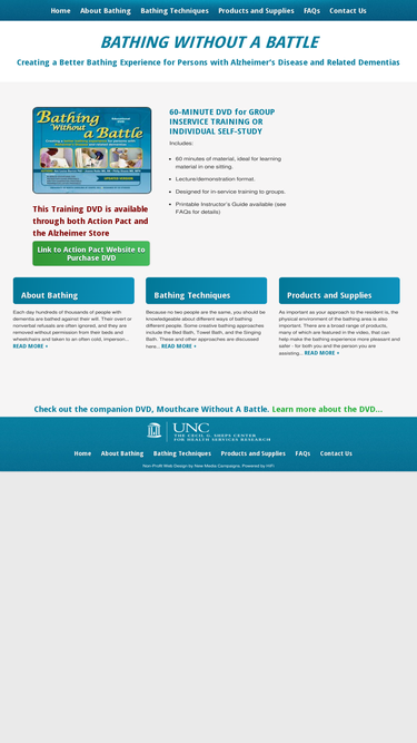 92%The award-winning Bathing Without a Battle program was developed using over 10-years of research into improving bathing for persons with dementia. The progra...