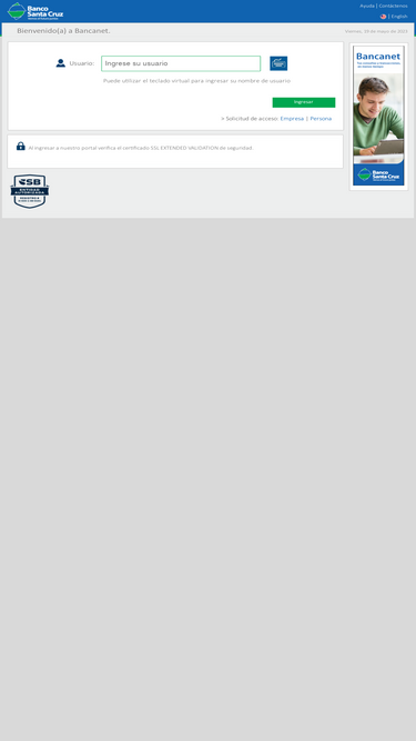 Accede a todos los servicios financieros del Banco de Santa Cruz. Cuentas, tarjetas, préstamos, seguros y más.
