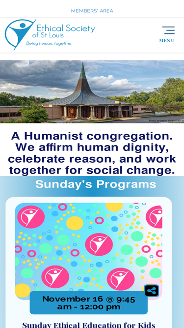 85%Governance Pages Ethical Society of St. Louis is a welcoming home to Humanists, and community is very important to us. We want you to feel a part of our community and that, for many people, means
