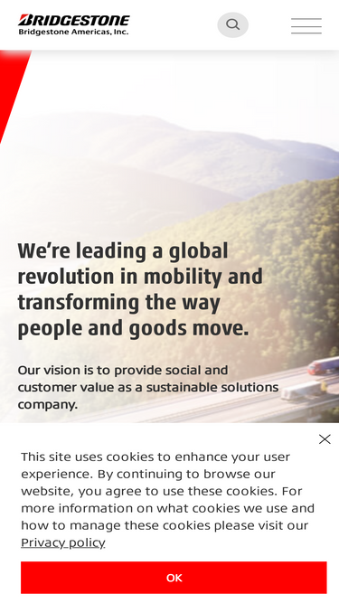 100%since its founding in 1931, bridgestone is committed to innovating improvements for the world around us. we strive for what sets new standards.