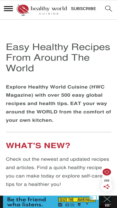90%Join Healthy World Cuisine for easy global recipes and health tips. EAT your way around the WORLD from the comfort of your own kitchen. https://www.hwcmagazine.com