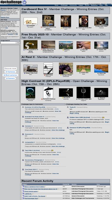 84%weekly digital photography contest site, featuring active forums, tutorials, photographer profiles, and more. enter and/or vote -- fun learning for all skill levels.