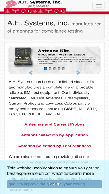 85%a.h. systems manufactures antennas, accessories, and offers services for the emi/emc compliance industry.