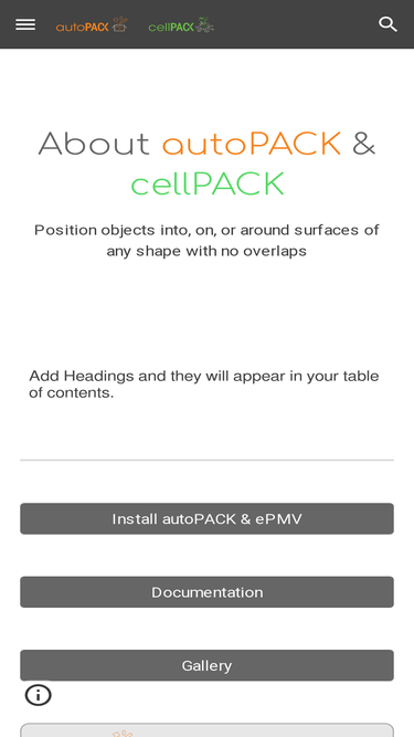100%autoPACK: INSTALLATION for Blender (includes autoPACK and ePMV in one complete Blender package) Overview This installation includes uPy, ePMV, & autoPACK This early installation for autoPACK is an alpha version- save your work often. uPy (ubiquitous Python API) enables ePMV and autoPACK to work in
