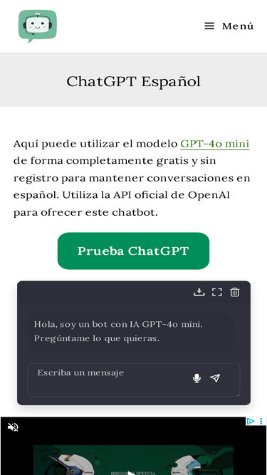 91%Utilice ChatGPT, GPT-4o mini, de forma gratuita y sin necesidad de registro para mantener conversaciones realistas con una inteligencia artificial avanzada.