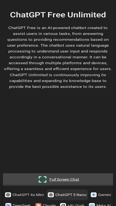91%welcome to free chatgpt unlimited ads chatgpt free is an ai powered chatbot created to assist users in various tasks, from answering questions to providing recommendations based on user preference. the chatbot uses natural language processing to understand user input and responds accordingly in a conversational manner. it can be accessed through multiple platforms and … home read more »