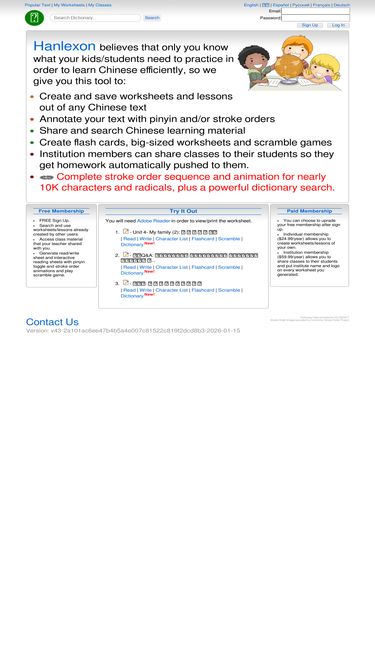 provides teachers and parents a tool to generate chinese homework sheets to young learners.