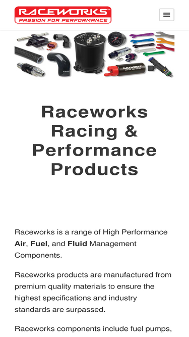 68%a new breed of high performance products has arrived! raceworks is a range of high performance automotive air, fuel, and fluid management components.