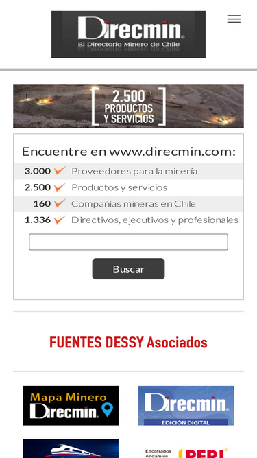 62%bienvenido a direcmin.com el portal de la minería, donde está toda la información de más de 3.000 proveedores, que ofrecen 2.200 productos y servicios distintos que las empresas mineras consumen habitualmente. también hay información completa de 167 compañías mineras que operan en chile. la información disponible incluye la dirección, teléfono, correo electrónico y sitio web.