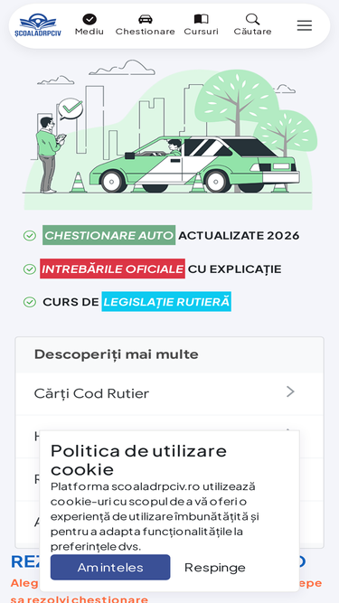 100%chestionare auto drpciv actualizate 2024 pentru toate categoriile a,b,c,d,e si redobandire. teste dgpci cu explicatii pentru a putea promova examenul oficial.