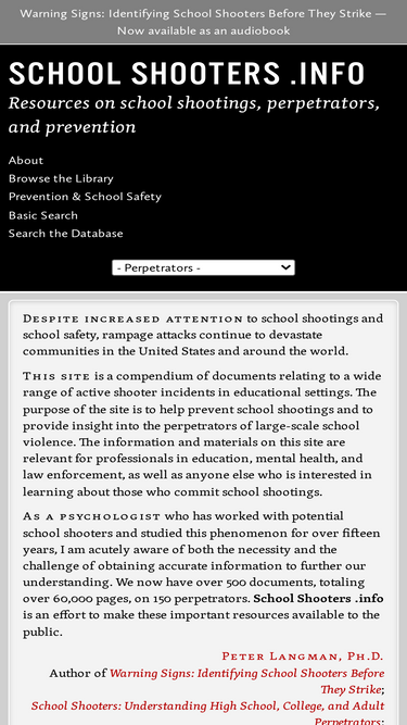 a compendium of documents relating to active shooter incidents in educational settings. the purpose of this site is to help prevent school shootings and to provide insight into the perpetrators.