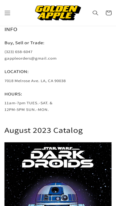 79%Golden Apple Comics Los Angeles. World Famous Comic Book Store in LA. Shop located on Melrose and La Brea. New and Old Comics, Toys, Marvel, DC, Image and more. We buy comics.