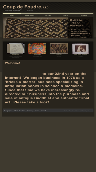 100%home page of coup de foudre, llc. buyers and sellers of rare books, maps, tribal and ethnographic art, buddhist art, americana, textiles, wine paraphernalia