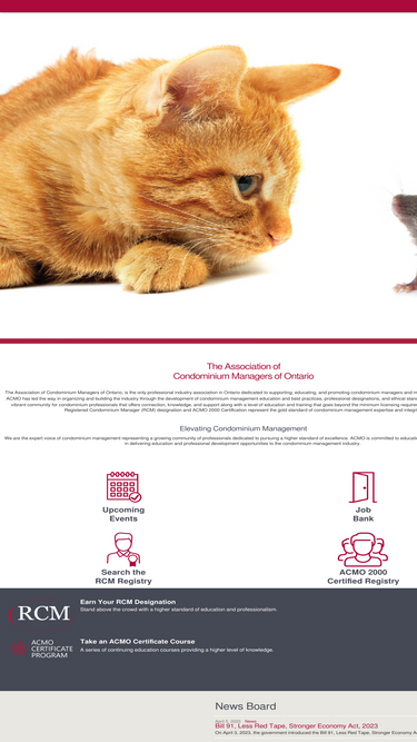 87%acmo, the association of condominium managers of ontario is the province's only professional association dedicated to supporting, educating and promoting condominium management professionals to improve the quality of the services they provide.
