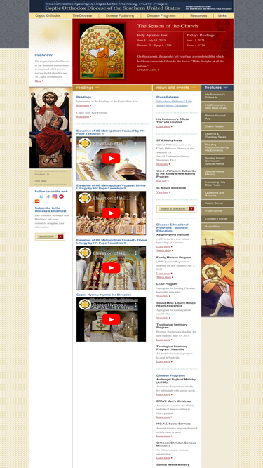 The Coptic Orthodox Metropolis of the Southern United States is comprised of 100 priests serving 72 churches and 37 Coptic communities.