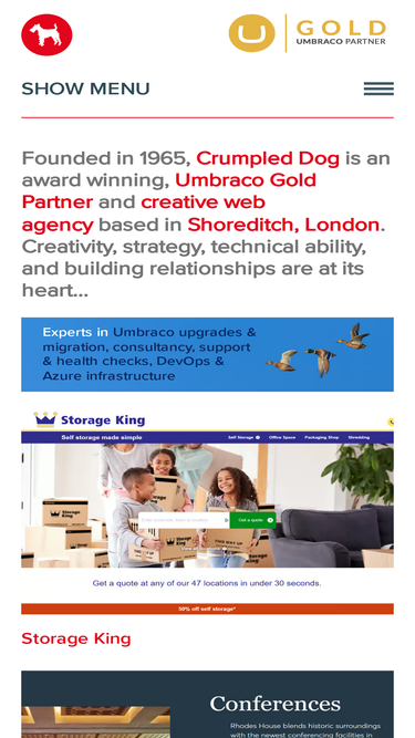 96%crumpled dog is a full service creative agency based in shoreditch, london. creativity, strategy, technical ability, umbraco cms and building relationships are at its heart