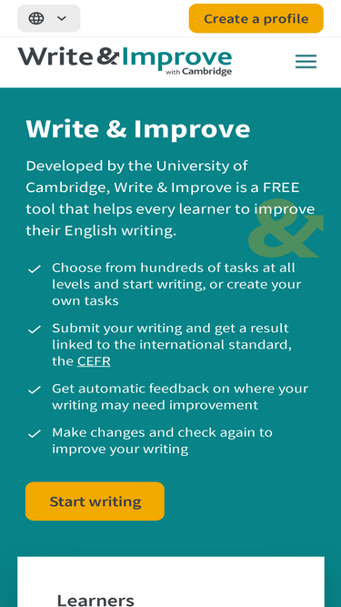 80%Choose a topic, write about it in English, get instant feedback... Improve!