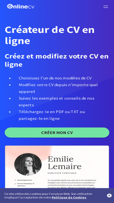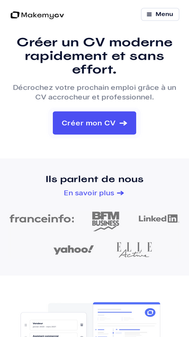 Os outros cinco concorrentes na lista dos 10 principais são onlinecv.fr, cvenligne.com, cv.fr, aidecv.fr e makemycv.fr.
