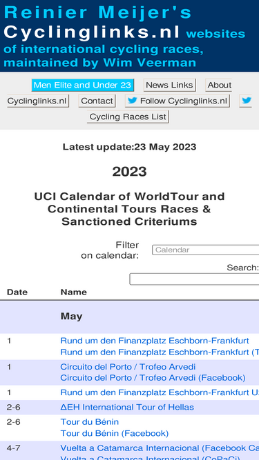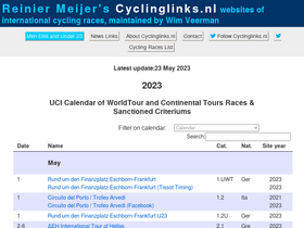 86%cyclinglinks.nl tries to be the most complete and up-to-date collection of links to websites of international cycling races in 2024. cycling races are listed by date on the uci calendar. men elite and under 23 cycling races.