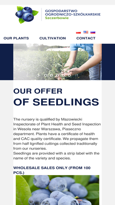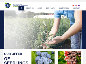 100%1.Borówka amerykańska ( wysoka ) – Vaccinium corymbosum 2.Jeżyna bezkolcowa – Rubus fruticosus 3.Malinojeżyna – Rubus hybrids Tayberry 4.Jagoda kamczacka – Lonicera orientali var. Longifolia 5.Winorośl – Vitis Odmiany o barwie owoców żółtych i zielonych: A1704 – B Bianka Bigas Galicyn Himrod – B Iza Zaliwska Jubiley N. Kamila Marquise Kiszmisz Cimes – B Kristaly Ontario Podarok Zaporoża Ruswien Talizman Timur Odmiany o barwie owoców różowych i czerwonych: Canadice Einset Seedless – B Isabella Krasotka Kristina Lidia LiwiaPreobrażenie Reliance – B Swenson Red Odmiany o barwie owoców granatowej lub czarnej: Alden Charli Gałsza Joy – B Kodrianka Konsuł Marchel Foch Muscat Bleu Roda Yukka Venus – B B – odmiana beznasienna