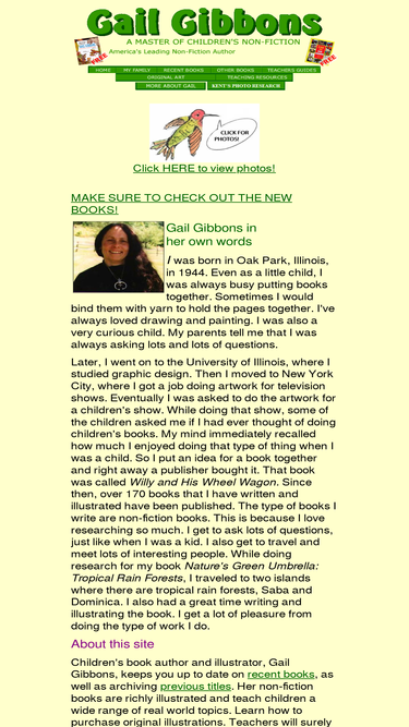 74%leading childern's book author gail gibbons has written and illustrated many non-fiction books for children. learn more about her, her work, maple syrup, and her original art and card shop here.