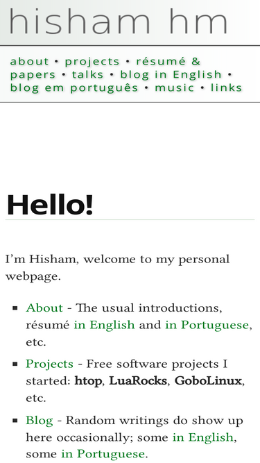 84%personal webpage of hisham muhammad, developer of htop, luarocks and gobolinux.