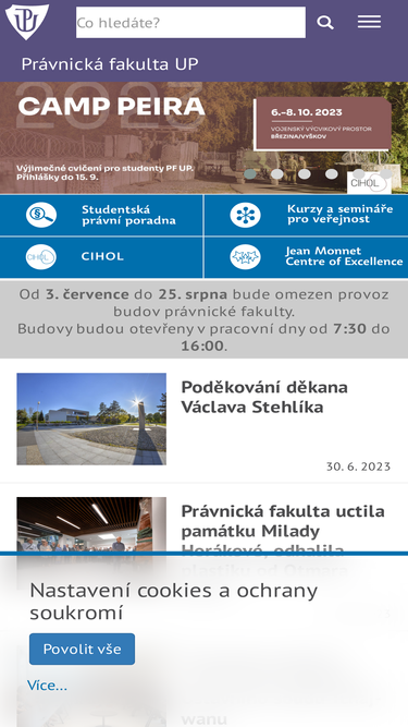 Hlavní webové stránky Právnické fakulty Univerzity Palackého v Olomouci