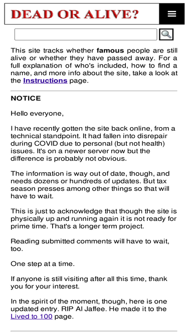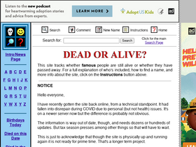 100%Use this site to find out if famous people are dead or alive.