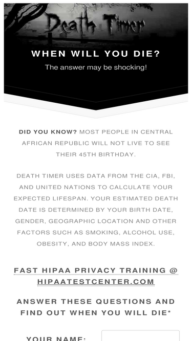 Death Timer uses data from the CIA, FBI, and United Nations to predict when you will die.