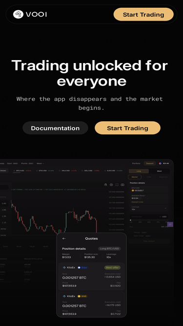 82%Trade crypto and RWA perps with one balance, zero gas, and no bridges. VOOI V2 brings CEX-grade UX to decentralized markets — powered by chain abstraction and AI infrastructure.