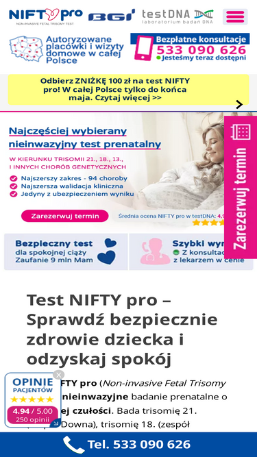 71%Test NIFTY® pro Katowice Bocheńskiego 38 A Umów dziś w pierwszym wolnym terminie! Dokładne badanie w kierunku T21 ✔94 choroby ✔Ubezpieczenie ✔Szybki wynik ✔>99%✔Wizyta domowa w cenie
