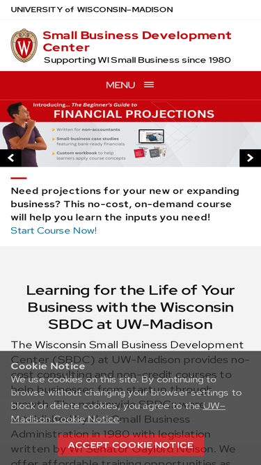 99%Welcome to the Wisconsin Small Business Development Center at UW-Madison - helping entrepreneurs succeed since 1980 through no-cost business consulting and affordable non-credit courses