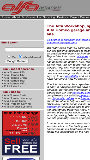 96%with loads of information on alfa romeos, a free car sales area, reviews, buyer's guides, servicing prices, an online parts store, repair guides and much more all designed to help with alfa ownership.